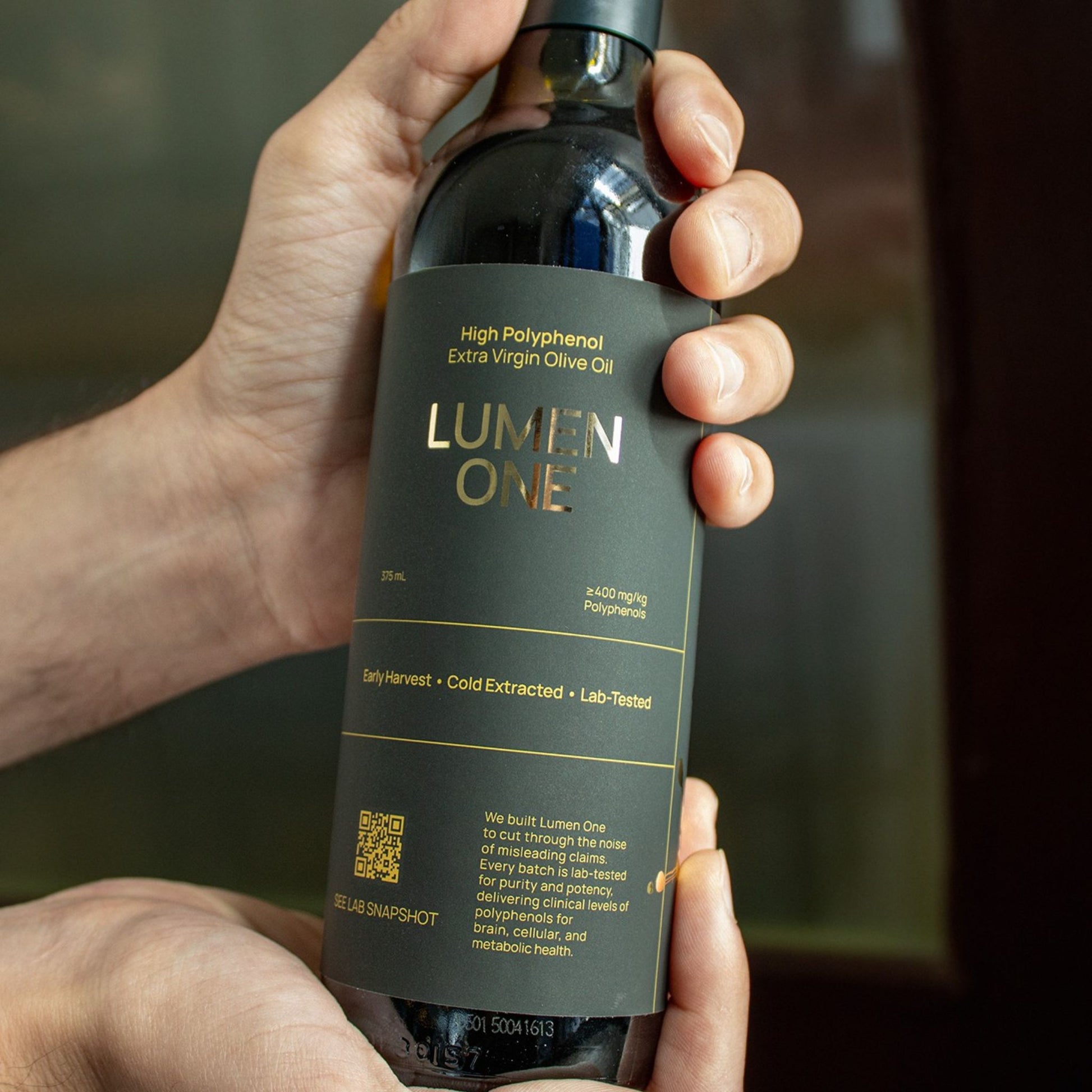 Lumen One EVOO is third party tested and carefully crafted to retain the polyphenols that actually support brain, heart, and metabolic health. It's built to deliver what most olive oils only promise.
