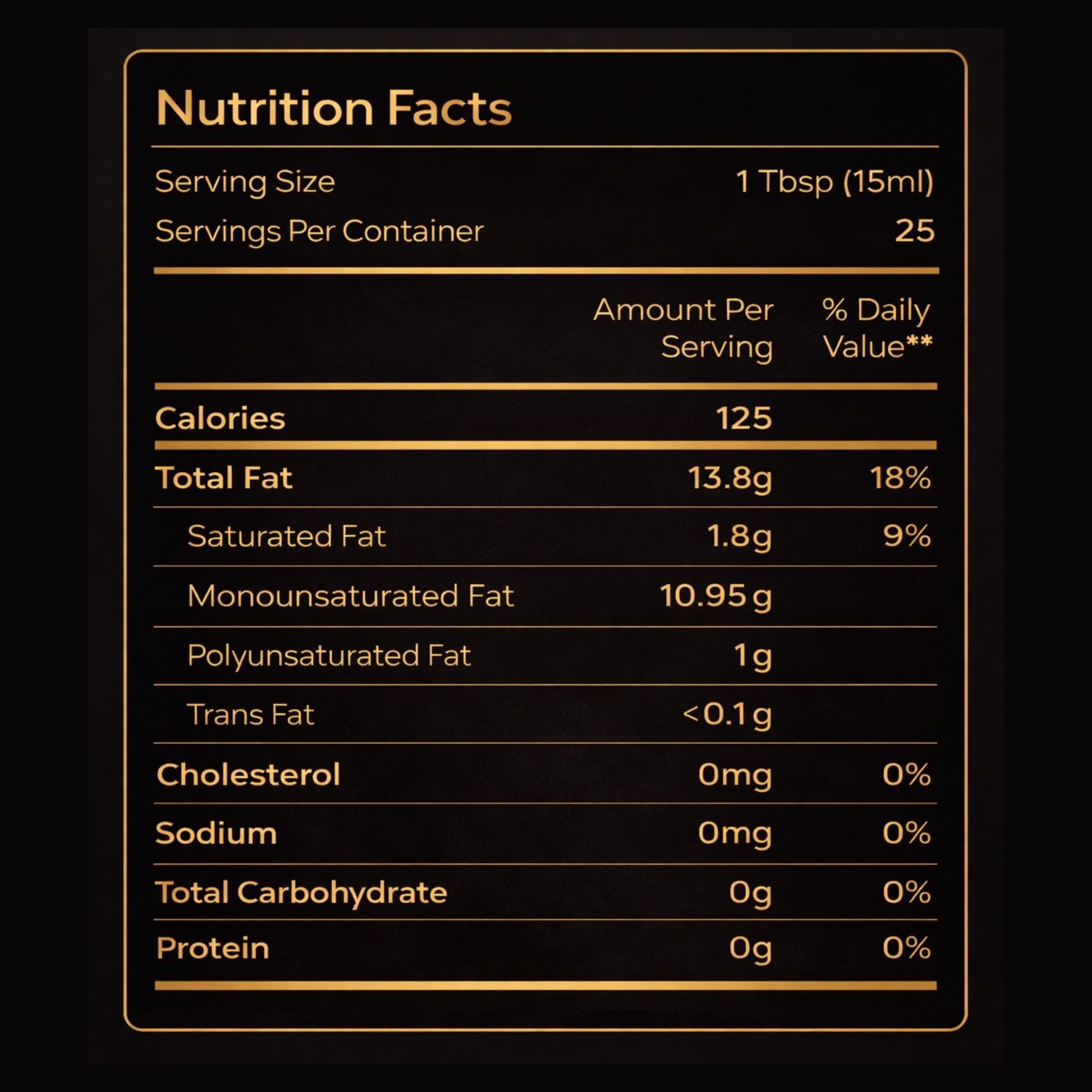 At around 70% oleic acid, our oil sits comfortably in the high oleic range. Higher MUFAs support healthy cholesterol balance, reduce inflammation, and help protect the oil itself from oxidation.